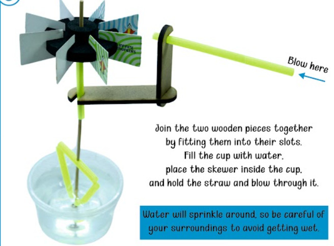 Simulates a small water turbine for understanding fluid dynamics and irrigation.